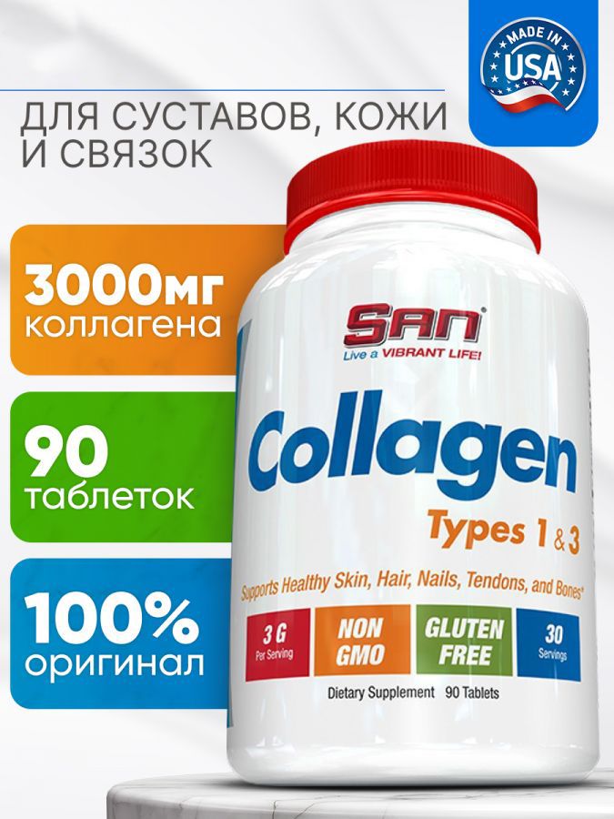Кажется, что рецепт поддержания здорового организма предельно прост: регулярные физические упражнения и сбалансированная диета с большим количеством белков и овощей. Но как насчет питания вашей кожи, волос, соединительных тканей, суставов? Коллаген является самым распространенным белком в нашем организме, а спортивная добавка SAN Collagen Types 1 & 3, обеспечивает чистый, без гормонов и ГМО гидролизованный коллаген, для быстрого усвоения и полного поглощения в кратчайшие сроки.